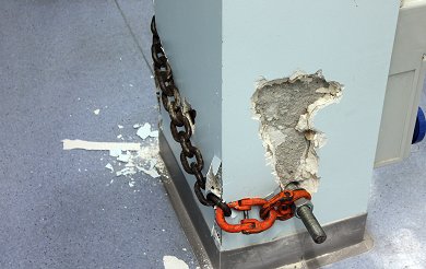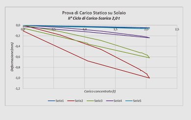 È stato chiesto la verifica statica del solaio del piano rialzato con una luce di 6 m per un carico ripartito di 300 kg/m². Per non effettuare fori sul solaio è stato scelto di applicare il carico tramite un martinetto idraulico spingente di potenza pari a 25 t. In corrispondenza del punto di tiro è stato messo una putrella di contrasto in acciaio di lunghezza di 1 m. Il rilievo della forza impressa è stato rilevato mediante due trasduttori di pressione montato in serie al martinetto.